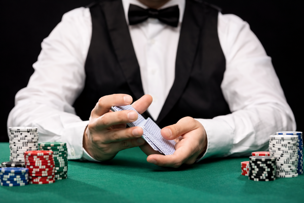 店内にてポーカーゲームの進行を担当していただきます。